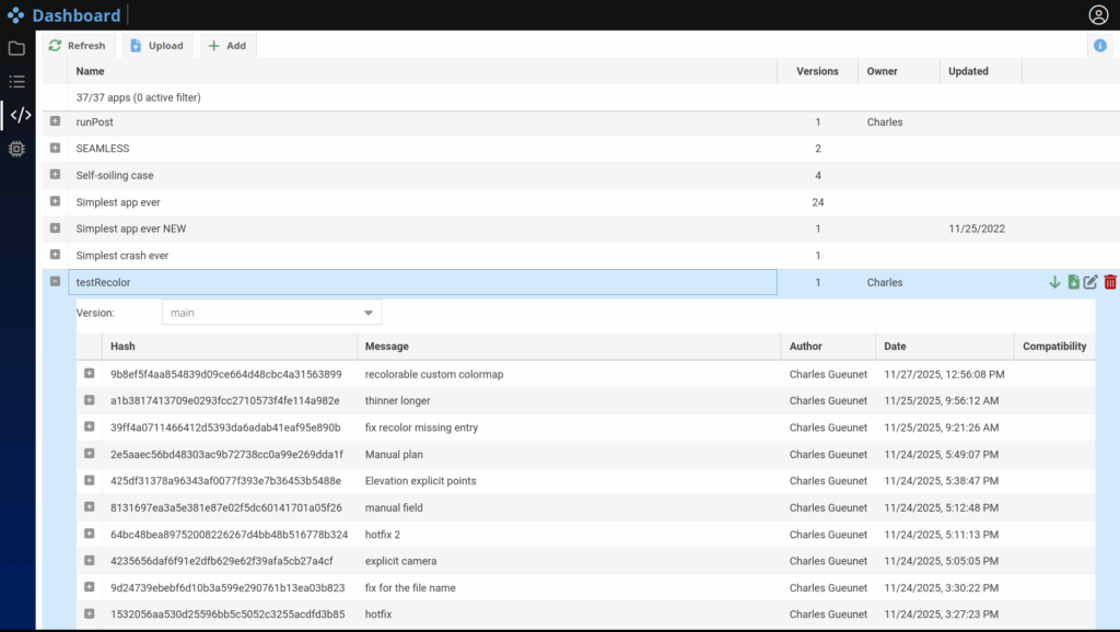 From simple scripts to distributed solvers, every app can then be executed on the desired resources directly from the browser, in the Project tab. Each app is fully integrated with the platform’s data management system, ensuring a seamless link between inputs, computation, and results.