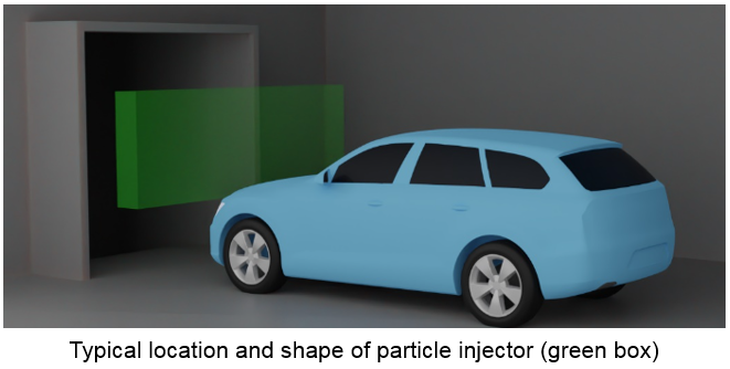 Rain is modeled using Lagrangian spherical particles with diameters ranging from 0.2 to 2 mm, injected ahead of the vehicle within a defined box-shaped region. Advanced wall interaction models account for droplet absorption, rebound, spreading, and splash, allowing smooth transition from discrete droplets to surface water film.