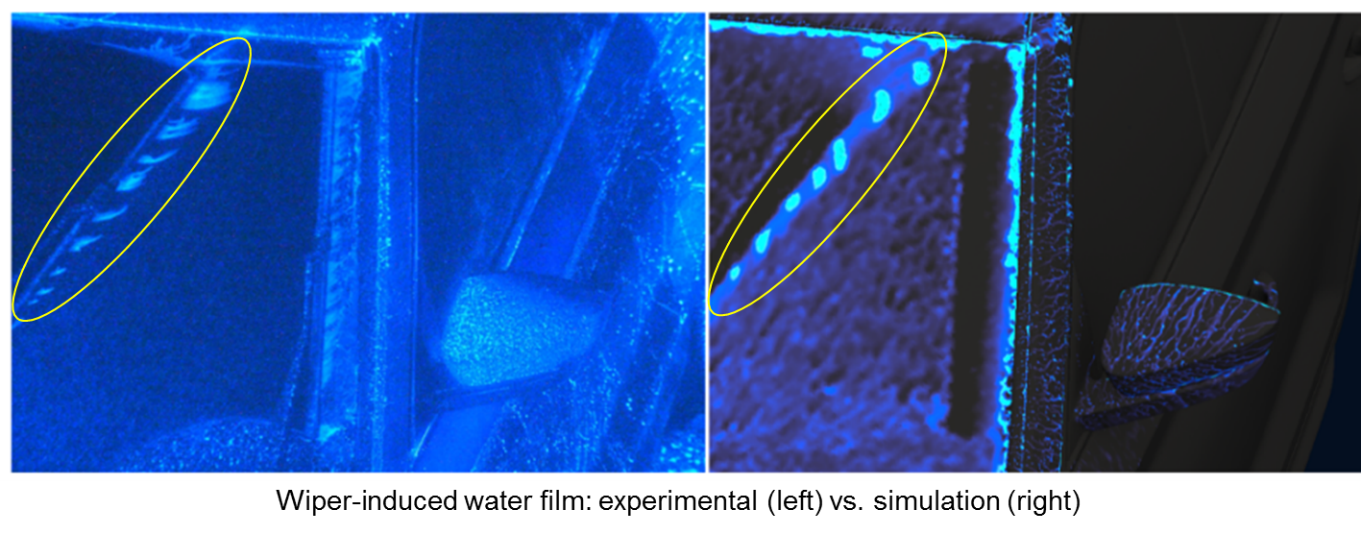 External Water Management (EWM) is crucial for ensuring driver comfort and safety, particularly under adverse weather conditions. Effective EWM reduces visibility issues, prevents water accumulation on critical surfaces, and limits rain-induced soiling of the vehicle exterior. Optimizing EWM around the A-pillar is inherently challenging due to structural considerations, as well as aerodynamic and acoustic performance requirements. To address these challenges efficiently within short development cycles, ICON now provides the ability to simulate these conditions, accurately predicting A-pillar overflow and the extent to which it will affect side window visibility. This is achieved using complex physical models made available within the iconCFD L2P module that account for mass and energy transfer between three distinct phases — air, rain droplets, and the surface water film.